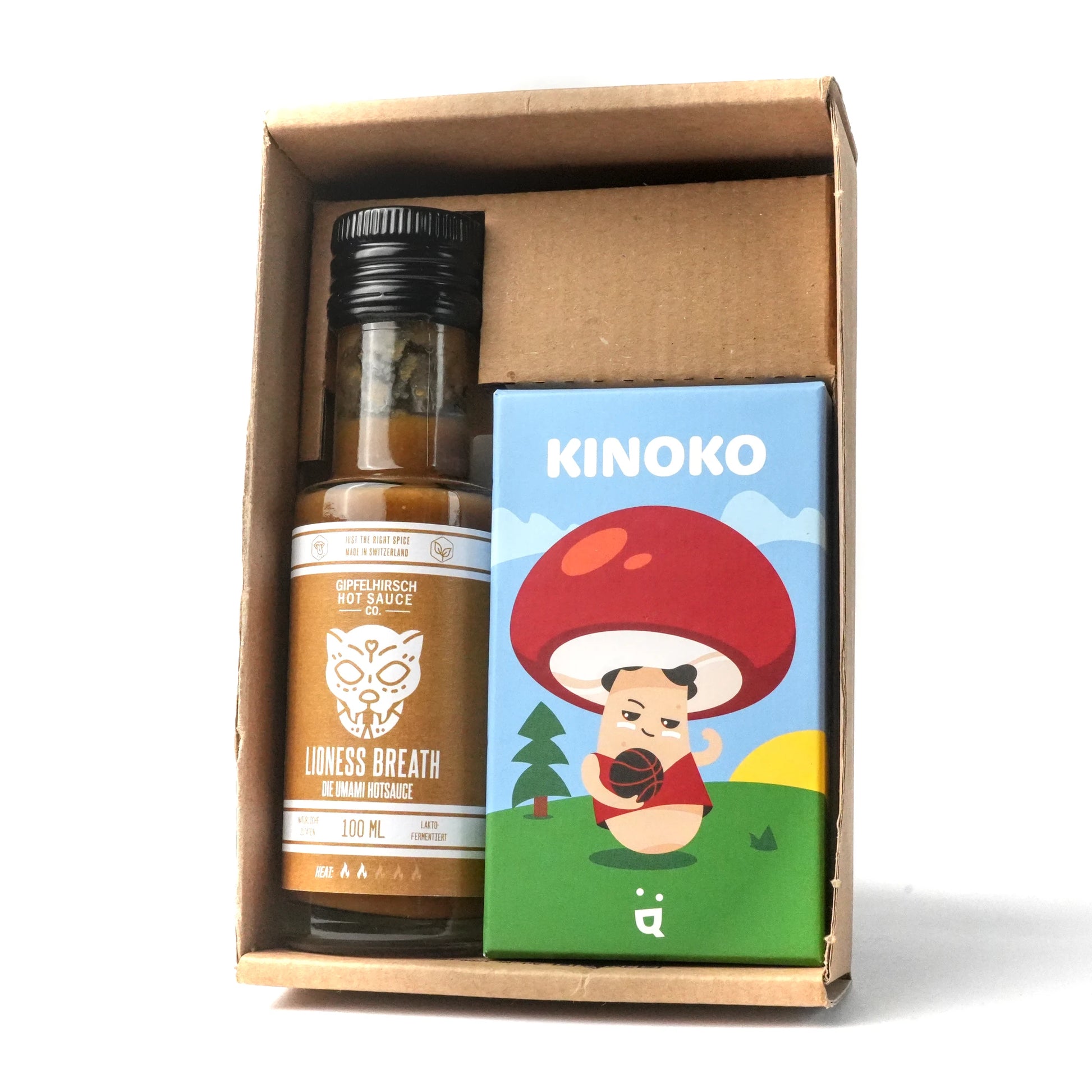 Dazu kommt die Lioness’ Breath Hot Sauce von Gipfelhirsch – eine kraftvolle Umami-Bombe aus Shiitake Pilzen, gelber Paprika, Habaneros, Knoblauch und Zwiebeln. Lacto-fermentiert, vegan und handgemacht in Zürich liefert sie Tiefe statt bloßer Schärfe: erdig, herzhaft, wild.